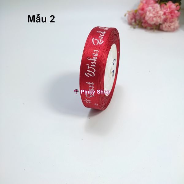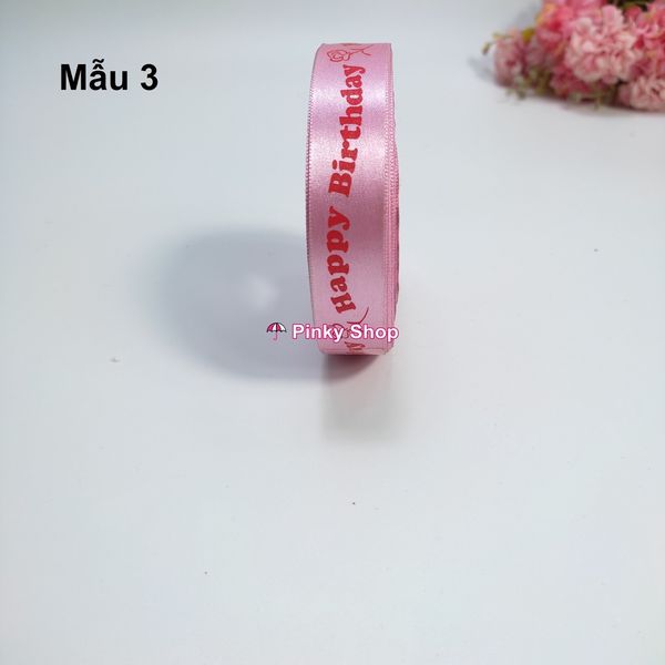 Ruy băng chữ happy birthday, happy new year, Best wishes good luck vải lụa satin 2cm cuộn 5mét handmade Pinky Shop.