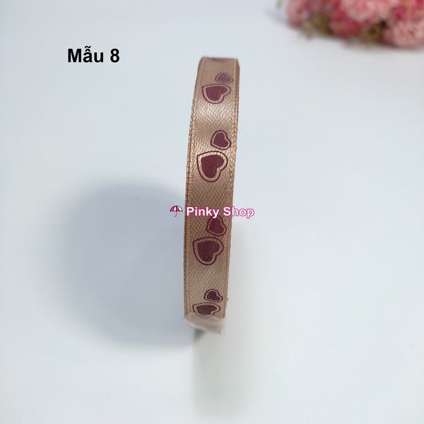 [Giá rẻ] Ruy băng lụa vải họa tiết trái tim 1cm cuộn 1m dùng may đồ làm phụ kiện handmade Pinky Shop.