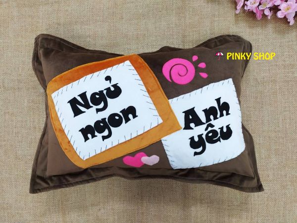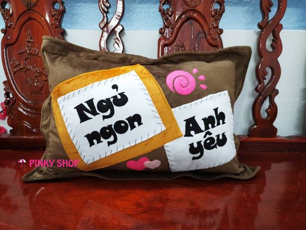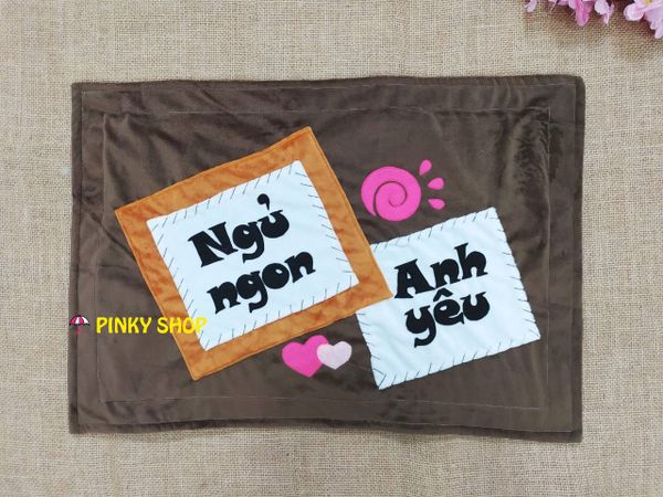 Gối handmade vải nỉ chữ nhật tặng bạn trai màu nâu đậm "Ngủ Ngon Anh Yêu" Mã GHMT5