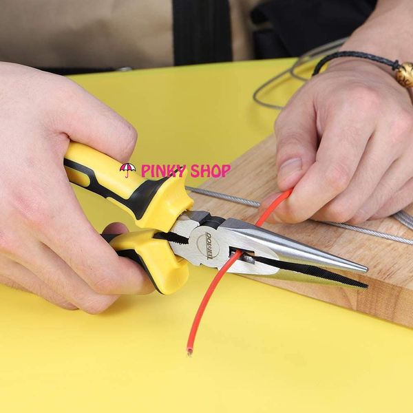 - Sản phẩm có thiết kế đơn giản, tiện dụng với mũi kìm dài, chuyên dùng để kẹp, giữ các vật dụng hoặc nhổ, cắt đinh và thép... làm công cụ để làm đồ handmade DIY, sữa chữa dụng cụ cho gia đình, đa chức năng và dễ bảo quản.