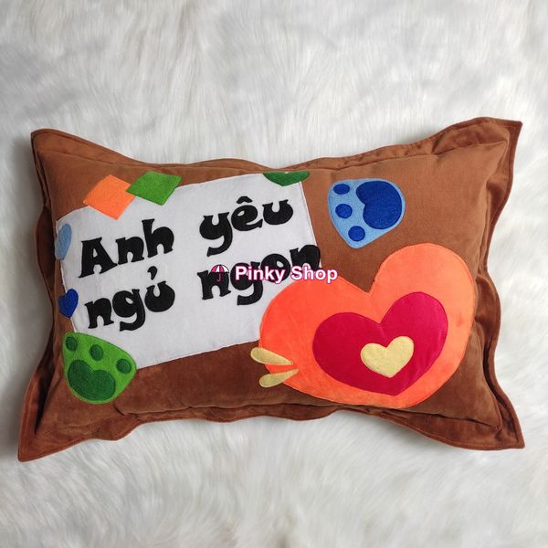 1. Quà tặng bạn trai độc đáo Gối handmade thêu chữ "Anh Yêu Ngủ Ngon " vải nỉ cao cấp hình chữ nhật Pinky Shop mã GH13.