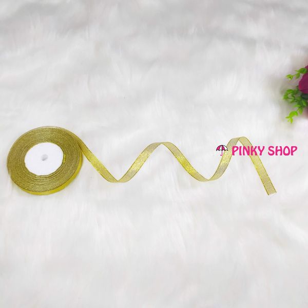 Ruy băng, dây ruy băng kim tuyến Pinky Shop1 cm (còn gọi là ruy băng 1 phân, 1p, có bề rộng 1 cm) màu vàng mã RB1V1