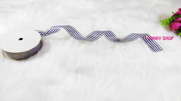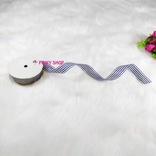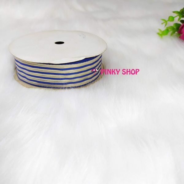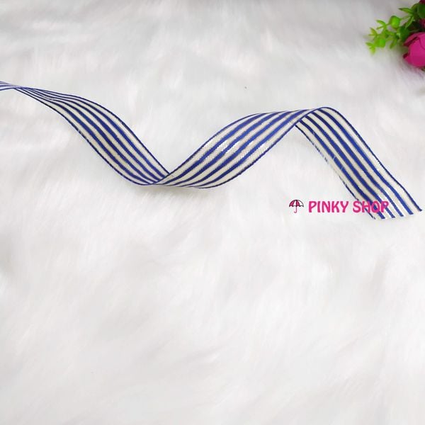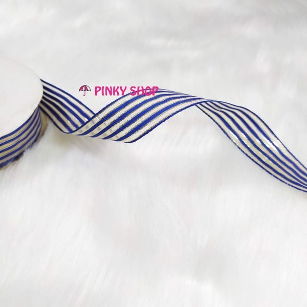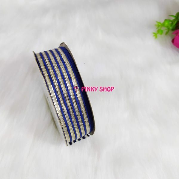 Ruy băng, dây ruy băng sọc 3 màu kim tuyến Pinky Shop 4 cm (còn gọi là ruy băng 4 phân, 4p, có bề rộng 4 cm) màu xanh dương đậm mãu số 1 Mã RBS3KĐ1